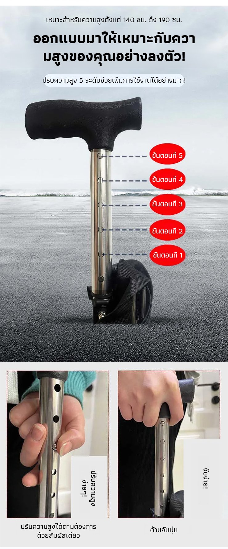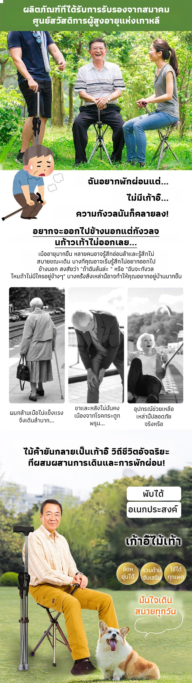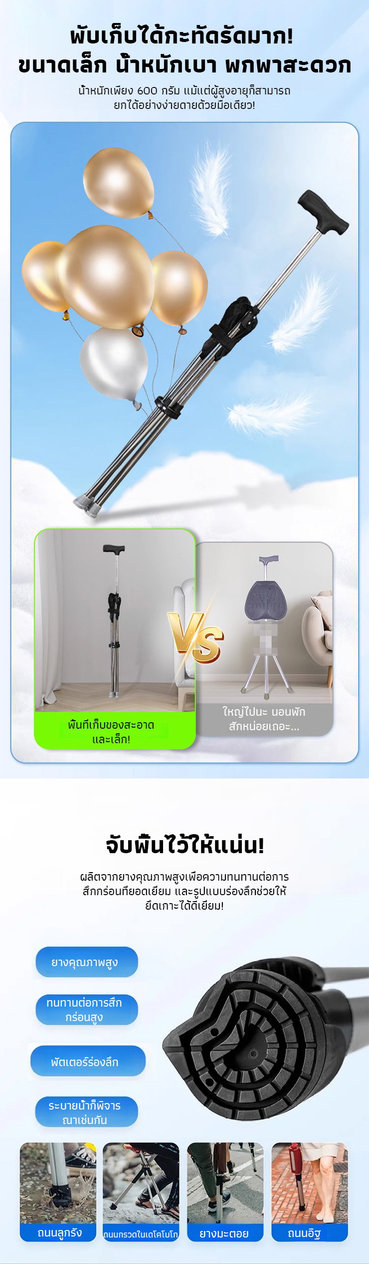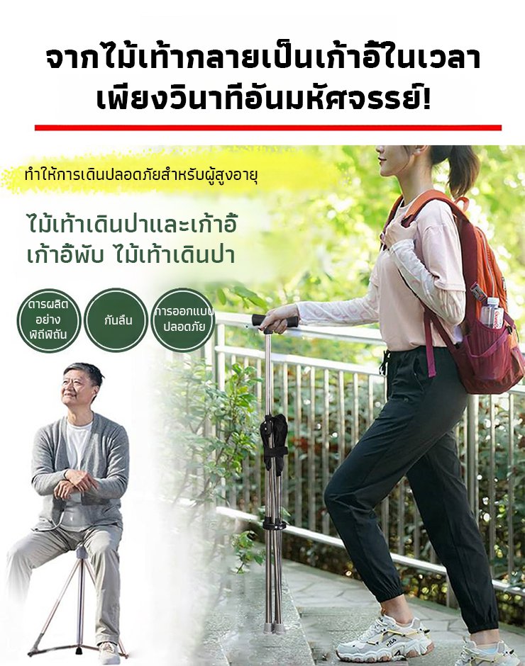 【มีให้เลือก 3 สี】ไม้เท้าเก้าอี้กันลื่นแบบยืดหดได้